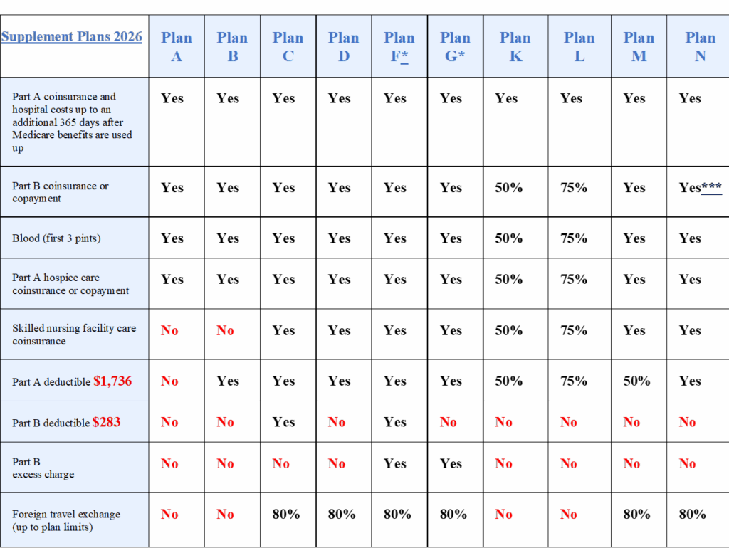Medigap Plan Comparison Chart